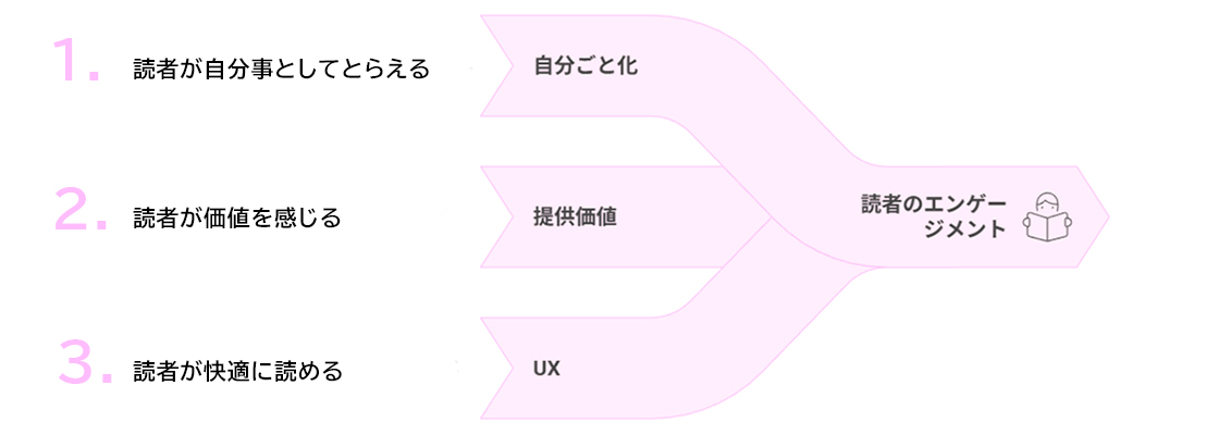 自分ごと化 → 提供価値 → 読みやすさ(UX)
