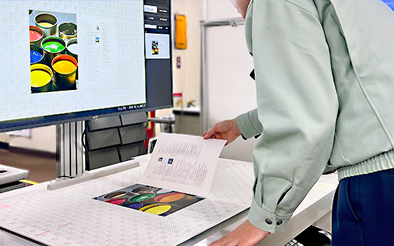 撮影から画像処理担当が立ち会い、実物を確認しながら、印刷物へのアウトプットを想定した画像処理が可能です。またカラーマネジメントシステムにより、オフセット印刷、オンデマンド印刷、インクジェットプリンタなど全ての印刷機において一貫した品質管理をお約束いたします。